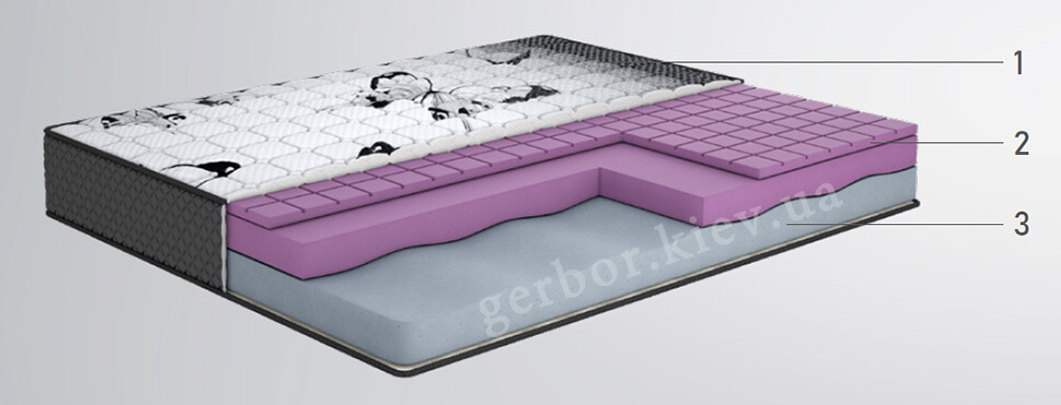 - Grey Stone Foam – жорстка піна, забезпечує тривалу фазу глибокого сну завдяки оптимальному регулюванню навантаженню на блок. Виконує основну функцію підтримки у матраца.